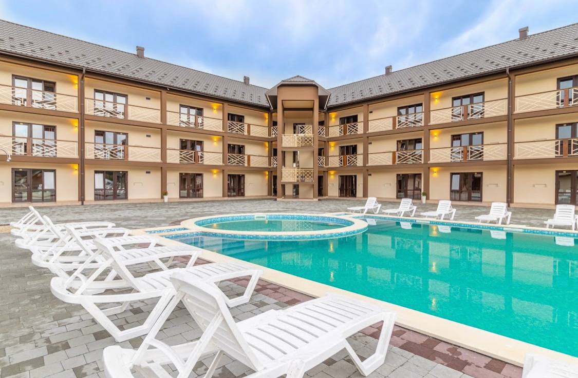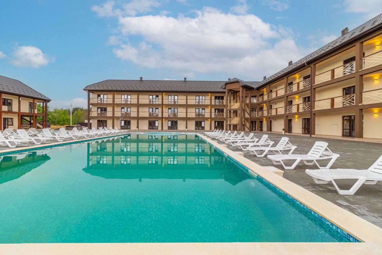 55 затишних номерів різних категорій, два басейни, зона відпочинку з альтанками та мангалами, кафе на території — усе для вашого ідеального відпочинку.